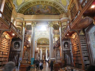 入館料を支払って中に入り、大広間(プルンクザール)を目指す。中は壮大な図書室。写真撮影OK。
