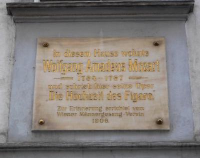 シュテファン大聖堂を目指していたら、建物に貼り付かれているパネルを発見。「モーツァルトは1784年から1787年まで、ここに住み、「フィガロの結婚」を作曲した」とある。