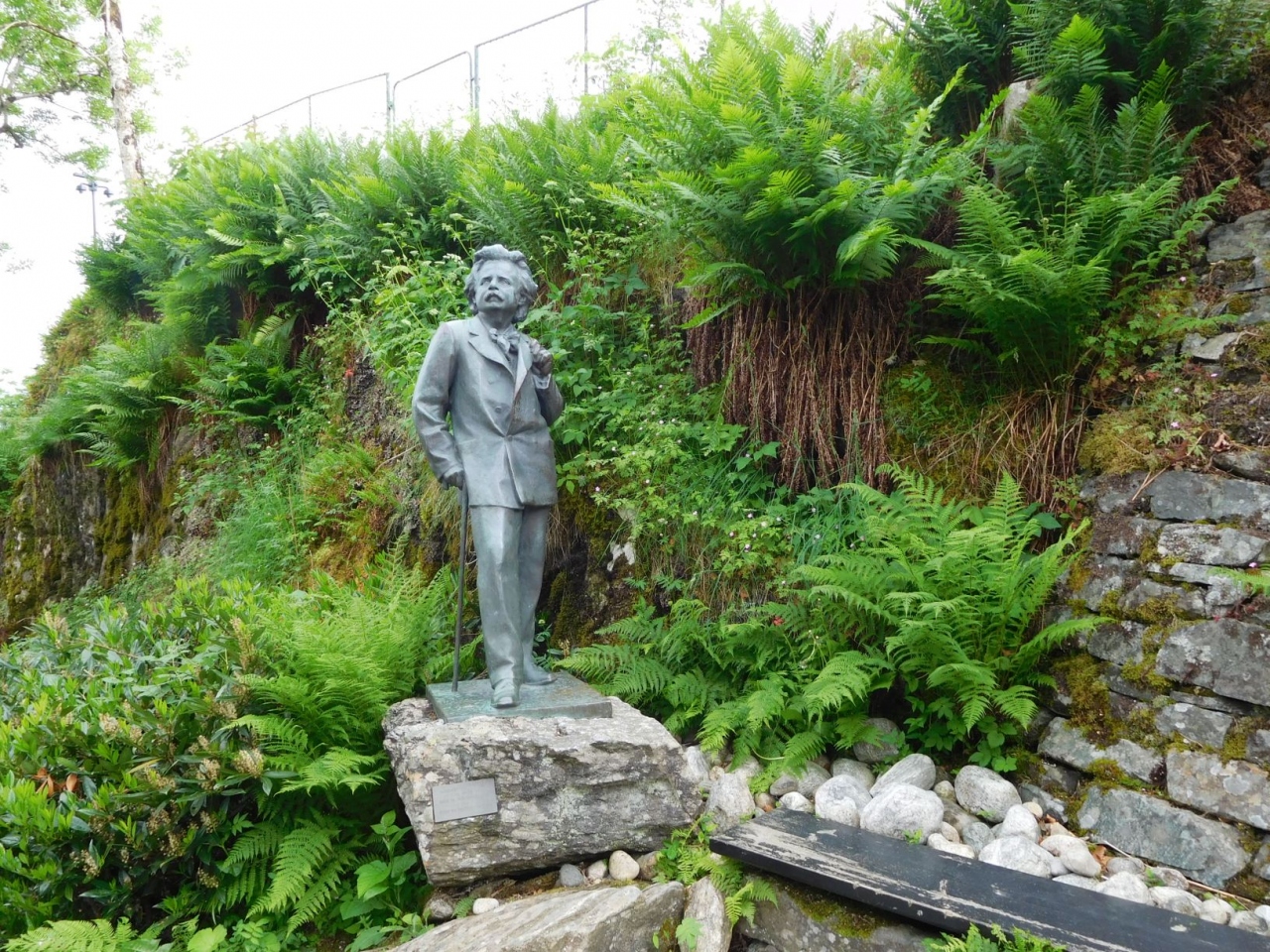 グリーク像の前で、記念写真。コンサートホールがあり、今の季節は、毎日午後にコンサートが開催されている。