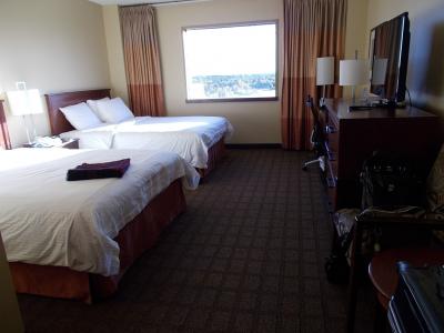 外観は典型的な2階建てのモーテルスタイルで、スイート以外は部屋からの眺望はない。部屋は広くて清潔、快適。バスタブ、電子レンジ、冷蔵庫、無料WIFIあり。