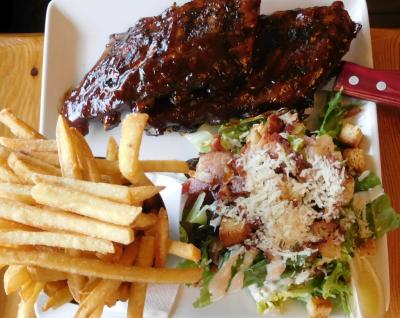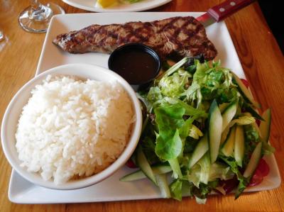 8oz Steak Platter($26.50)は今回の旅行で一番美味なステーキで、お米も美味しい。Back of Ribs($30)も美味しかったとのこと。Grilled Avocadoの1個が硬くて食べられないと苦情を言ったら、半額にしてくれて良心的。スタッフは感じが良いし、中の雰囲気も良い。お薦め。- 旅行時期
