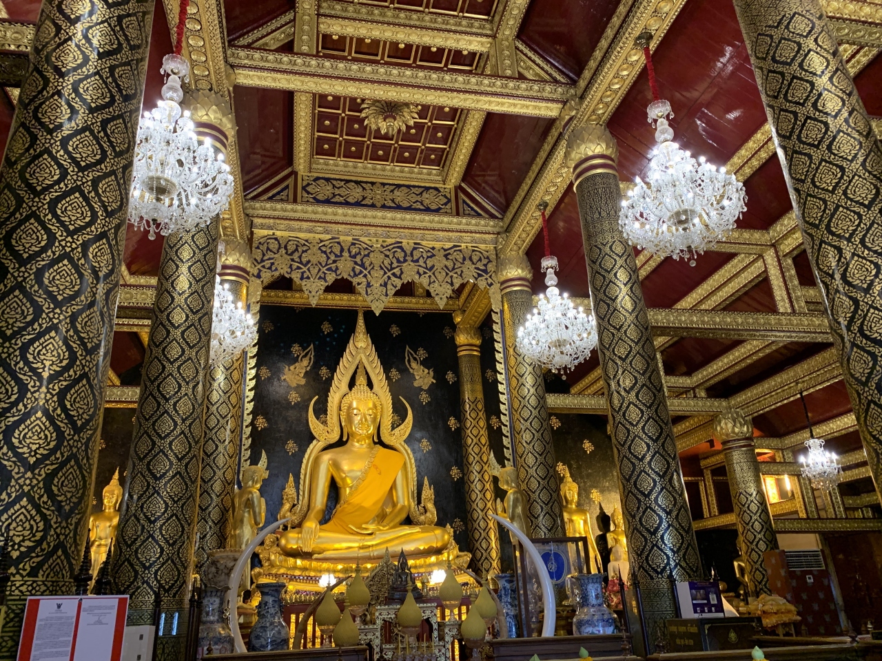 タイで最も絢爛豪華で美しい仏教寺院と呼ばれている寺院です。本堂にある黄金の仏像はもとより、天井から柱、壁の装飾、シャンデリアなど内装がとにかくゴージャスで全てキラキラ、非常に目を引く建築になっています。お寺としての歴史も古いようです。ピサヌローク