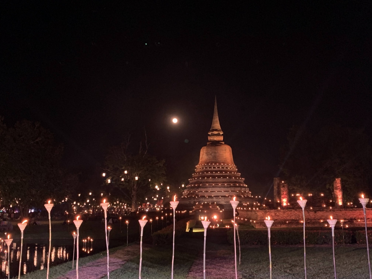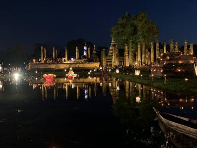 仏教寺院遺跡が好きな方にはたまらない遺跡公園です。バンコクからは遠いので遠距離バスや飛行機などで半日がかりでの移動が必要なので、日帰り旅行は難しいですが、時間をかけて行くだけの価値がある美しい歴史公園(世界遺産)です。園内はとても広いので、自転車をレンタルして観光することもできます。11月ごろのロイクラトン祭りの起源だそうで、遺跡ではタイで最大級のお祭りが開催されます。
