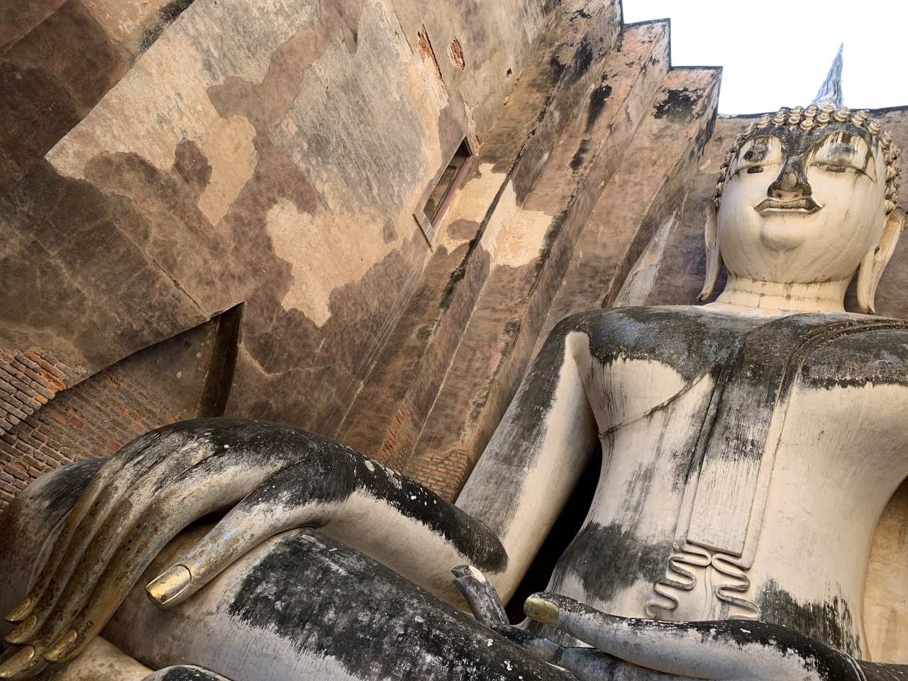 スコータイ遺跡公園のなかでおそらく一番人気の遺跡で、巨大な仏像があります。四方を壁に囲まれているため、言葉を発するとエコーが聞こえることから、武将が勝機をブッダに尋ねそれを兵を率いる戦略に利用し、実際に勝利した逸話があるのだとか。場所が公共交通機関でアクセスできる場所にはないので、観光バスやタクシーなど車両での移動が必要です。
