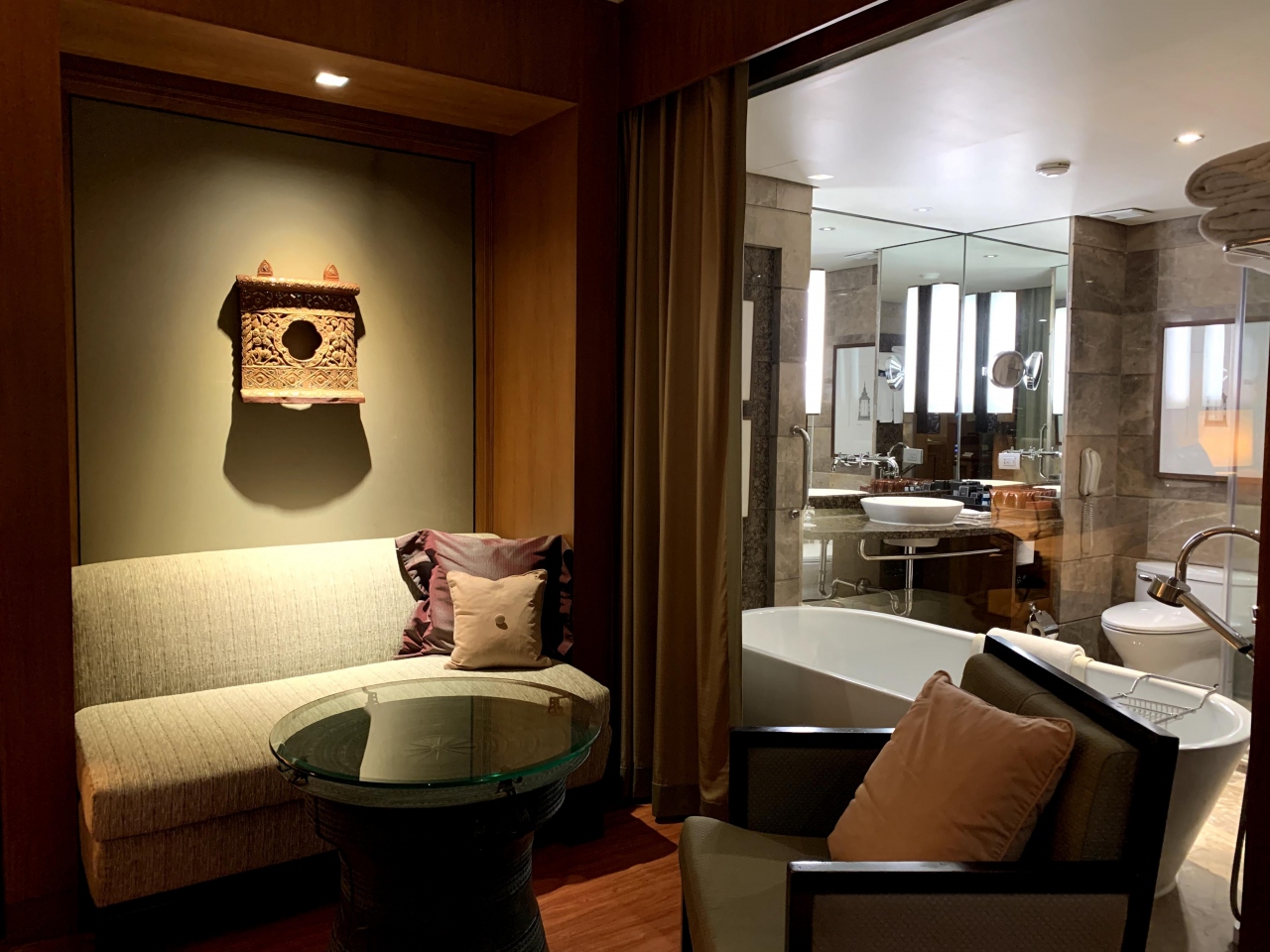 スタッフの対応も丁寧で、英語も問題なく通じます。部屋は快適で、バスタブもあります。バンコクの街並みを見下ろすシティビューが素敵です。NHKの国際放送と日本語放送が入ります。食事のレベルも高く、日本食もあります。とても快適な高級ホテルです。