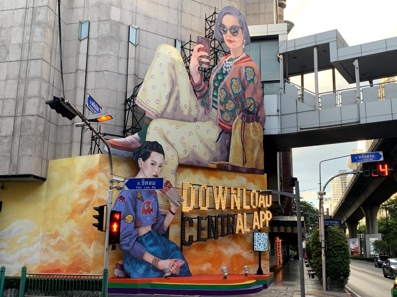 BTSチットロム駅を降りてすぐのところにあるセントラルのデパート。すぐ近くにもう一つのセントラルエンバシーもあり、サイアムスクエアにはセントラルワールドもあるので、なぜこんなにセントラルばかりあるのか不思議です。交差点から見える大きな看板が目を引きます。