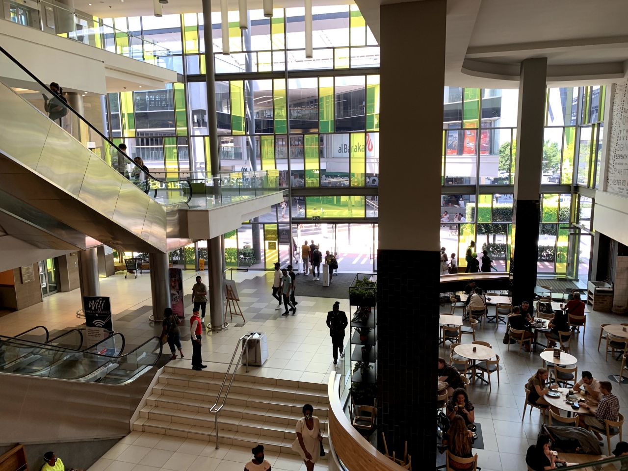 ヨハネスブルグで最も治安がいいと言われているサントン中心部にあります。ルイヴィトン、グッチなどの高級ブランドからH&Mのようなカジュアルまで全部揃っています。観光客が買うような南アフリカらしいものは逆にあまり見かけません。レストランも充実しています。