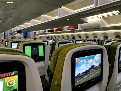 期待は新しいものでしたが、シートが快適というわけでもなく、食事もホットミールはそれなりに美味しい反面、それ以外は非常に味気ない内容でした。アフリカ便にもかかわらず価格が非常に安いので、その点ではコスパはよいのかもしれません。ビジネスクラスへの入札方式のアップグレードもあり、搭乗の数日前からメールで案内がきます。入札状況にもよりますが、5万円くらいプラスすればビジネスクラスにアップグレード できるようです。機内エンタメは充実していました。