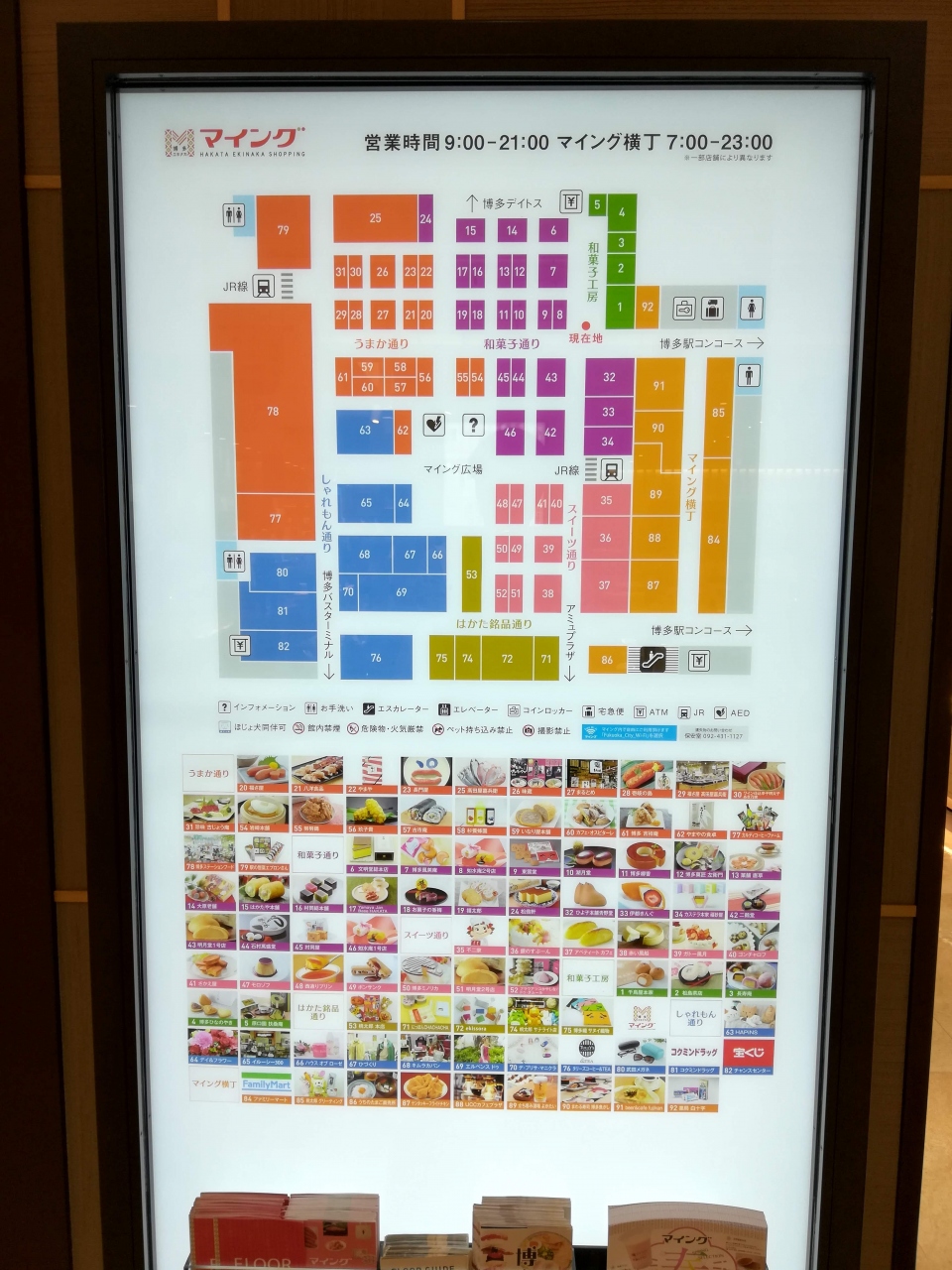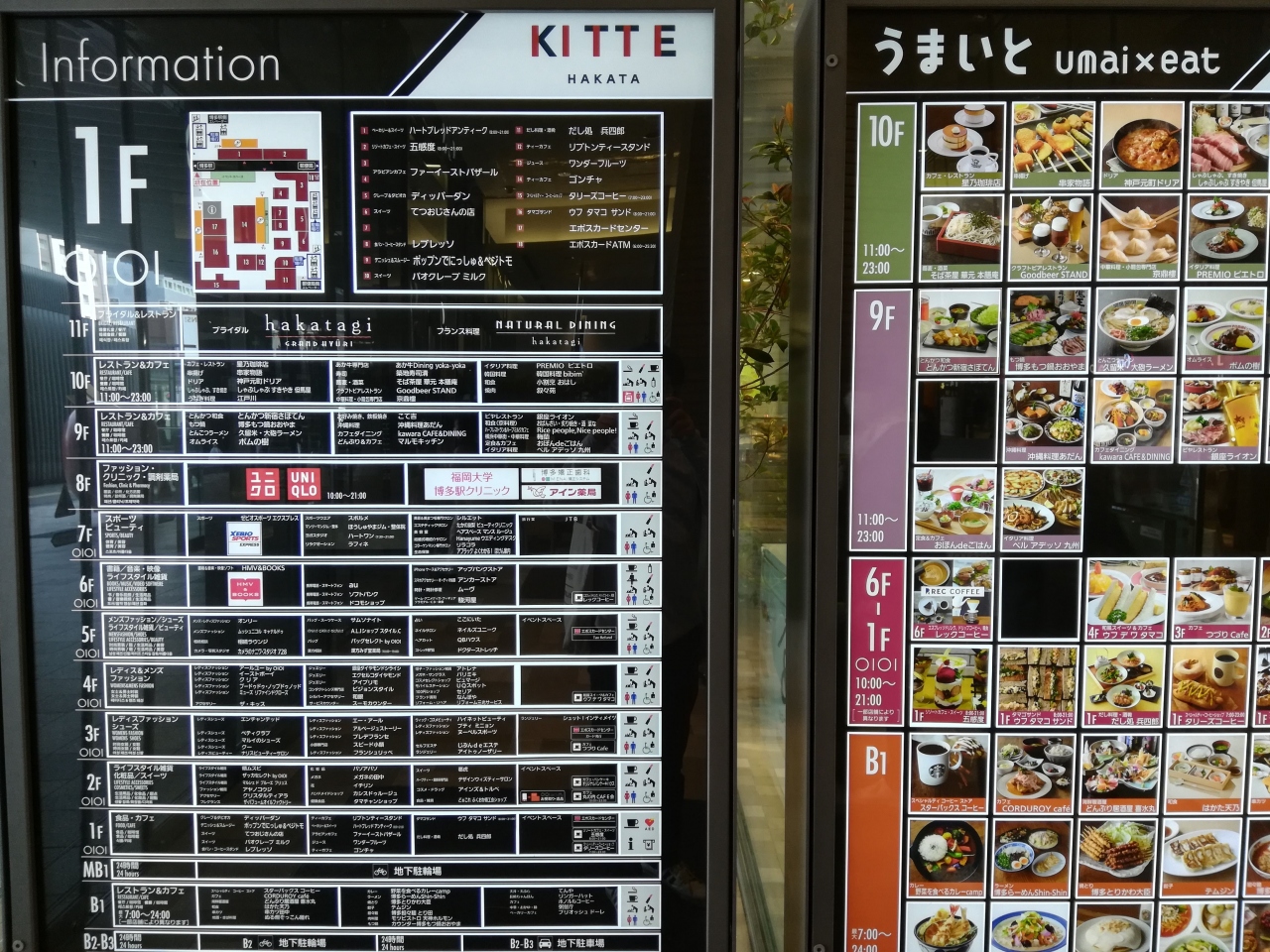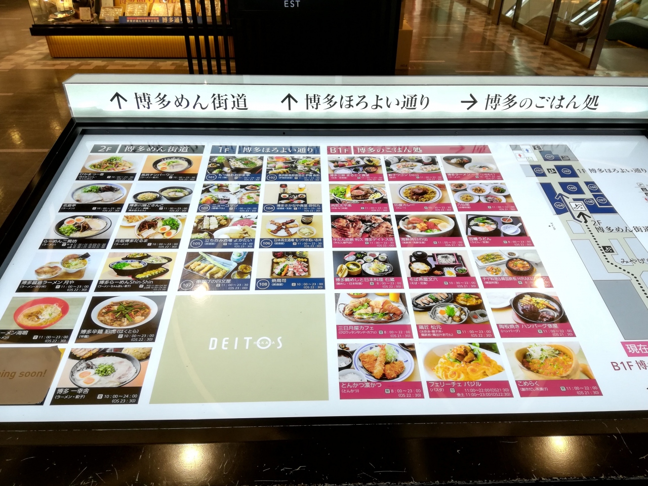 JR博多駅に一体となっているショッピングセンターです。売り場がとても広く、たくさんの店舗が出店しています。あれこれと見て回っているとどこにいるかわからなくなります。新幹線の時間など急いでいる時は、出口がわからなくならないように注意が必要かもしれません。