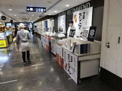 あごだしで知られる久原本店です。JR博多駅デイトスに入っています。名物あごだしを使った「あごせん」というお煎餅など、博多旅行、出張などのお土産になるものを売っています。新幹線博多駅、バスターミナルの近くにあります。