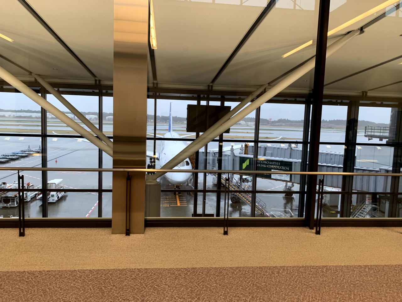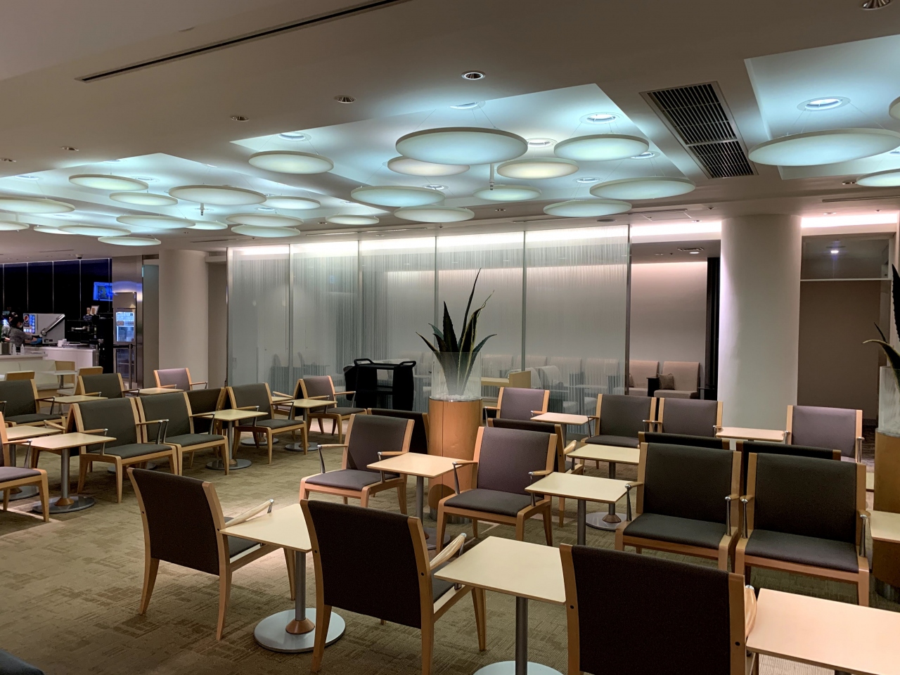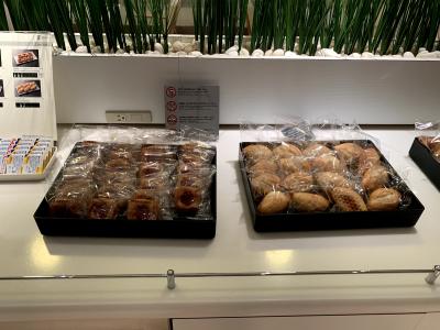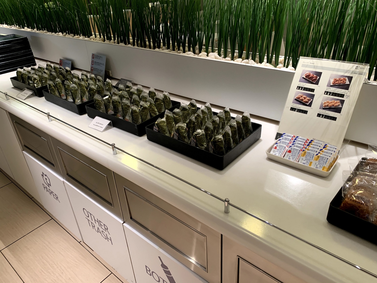 到着フロアにあり、セキュリティゲートの前にあります。そのため、ラウンジを出てから出発ロビーに行くまでに距離があり、時間があるので、直前までいることはできません。食べ物はおにぎりとパンなど。飲み物はコーヒー、お茶などのほかにビールもあります。