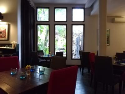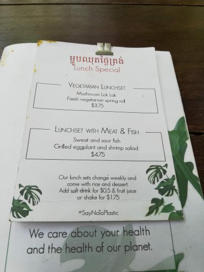 エコロジカルで緑に囲まれた雰囲気のよいレストランです。"Say No to Plastic"のサインが掲げてあり、ストローは竹製です。ブランチの時間帯に行きました。ベジタリアンランチを注文しましたが、ドリンク込みで5ドル弱くらいでした。入り口がややわかりにくいかもしれないので、スマホの地図を確認しながらいったほうがいいです。