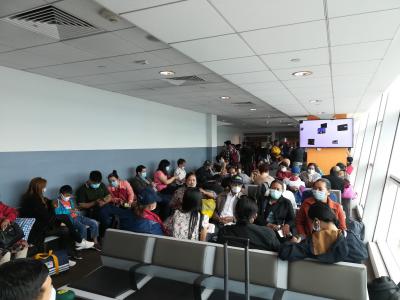 エアアジア を使うとこの空港の発着になります。セキュリティゲートが二段階あり、出国手続き後のゲート内に入ると、特に時間を潰せるようなお店などはほとんどなく、カフェが数件くらいのロビーで待つことになります。空港ないにはフリーWIFIがあります。どこでも問題なく使えました。