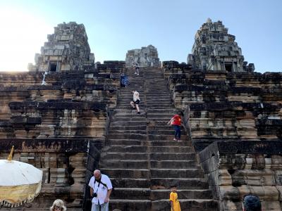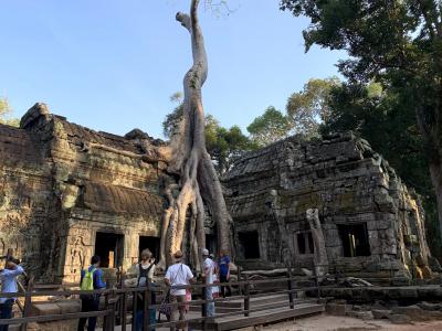 大きな熱帯雨林の木々が、崩れた遺跡をゆっくりと時間をかけて飲み込む様子がとても神秘的なお寺です。寺院の敷地には木の根が建物に覆いかぶさった写真スポットが結構いくつもありますが、写真を撮りたい人が多いため、木の根元には常に写真をとる人と次に写真とる人の列がずらっとできあがっており、そういった観光客を入れずにタプロームの姿全体をカッコよく撮るのは非常に難しいです。早朝6時、7時頃に行くと人が少なくてゆっくり観て回れるそうです。
