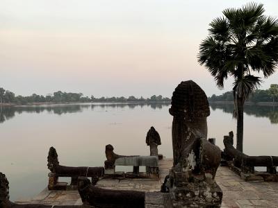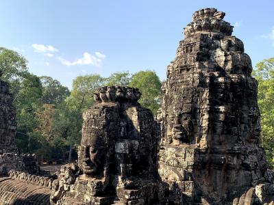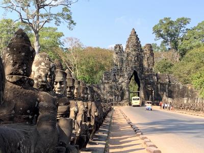 ナガというヘビの神様を持つ武神が並んだアンコールトムの南大門は、アンコール遺跡のなかでも有数のインスタ映えスポット!交通量が多く、常に車が走っていますので、合間をみていい角度からとるのが大変ですが、ナガから南大門へのアプローチがとても美しいです。