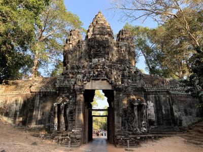 アンコールトムから次の遺跡へと向かう時に通る勝利の門。南大門にも似ていますが、別の門で、昔は戦いに勝った際に凱旋に使っていたゲートなんだそうです。アンコールトムはアンコールワットほど派手さはなく、落ち着いた感じの遺跡で、森を抜けてこの勝利の門が現れるのがなんとも荘厳で神秘的です。乗り物に乗っていてもぜひ少し止まって写真タイムをしましょう!
