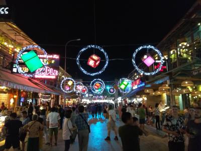 毎週、週末の夜だけ開かれる賑やかなマーケットです。プノンペン中心部からやや離れていますが、シソワスキーを北へまっすぐ歩いていくとトゥクトゥクを使わなくても辿りつくことができます。ステージがあり、セミプロの歌手(?)たちによるカラオケ大会のようなイベントがあり、それを囲むように服やアクセサリーの露天、ストリートフードの屋台などがたくさんでます。ここで売っている服は激安で、どれも10000リエル(2.5ドル)が基本です。あまり大きなマーケットではないので、週末の夜の散歩に軽く立ち寄る感じなら楽しいと思います。