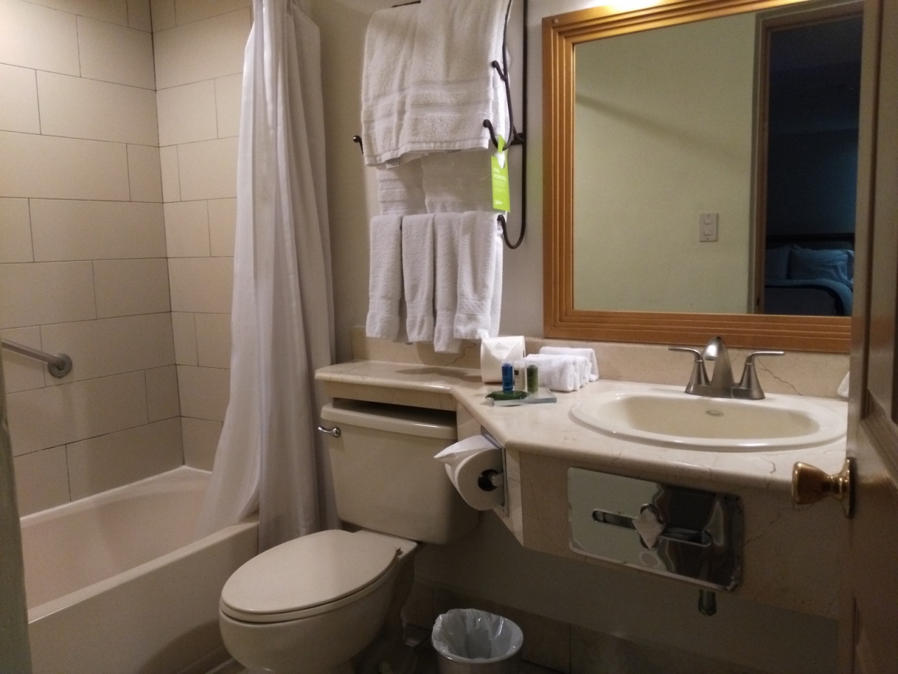 バスルームもとてもきれいです。半日以上の移動で疲れたので、バスタブにお湯をはってお風呂に入りました。グアテマラでこんな贅沢ができるなんて最高です。今回はひとり旅でリュック一個に荷物を減らしてきたので、着替えはバスルームで洗濯をしました。部屋にはアイロンがあります。もちろん無料です。外国のホテルのアメニティには、歯ブラシやカミソリが入っていないので、注意しましょう。石鹸、シャンプー、リンス、ボディローションは含まれています。ちなみに、これらには日本の柚子が使われていました。