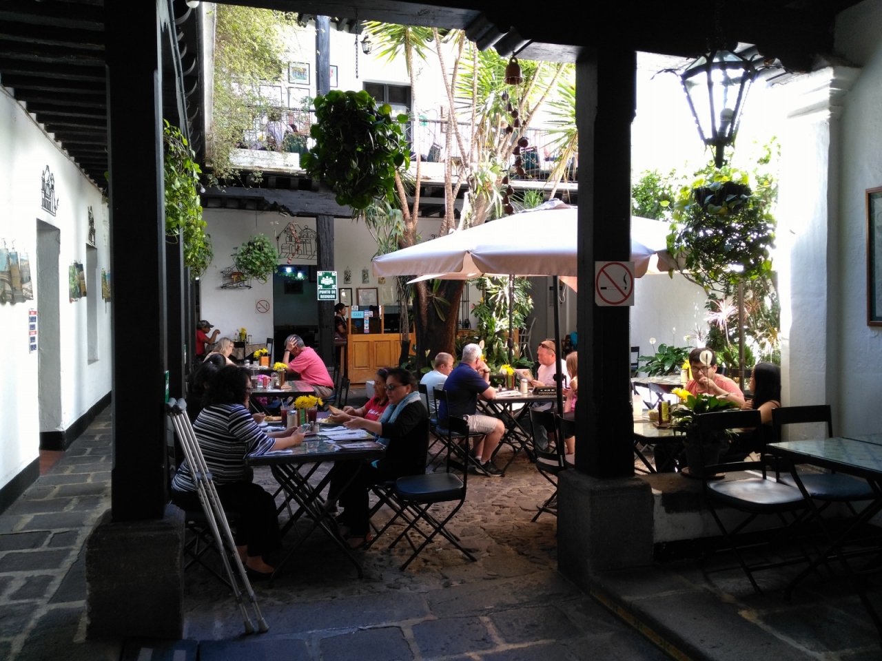 カフェは日差しがちょうどよく差し込む中庭にあります。- 旅行時期