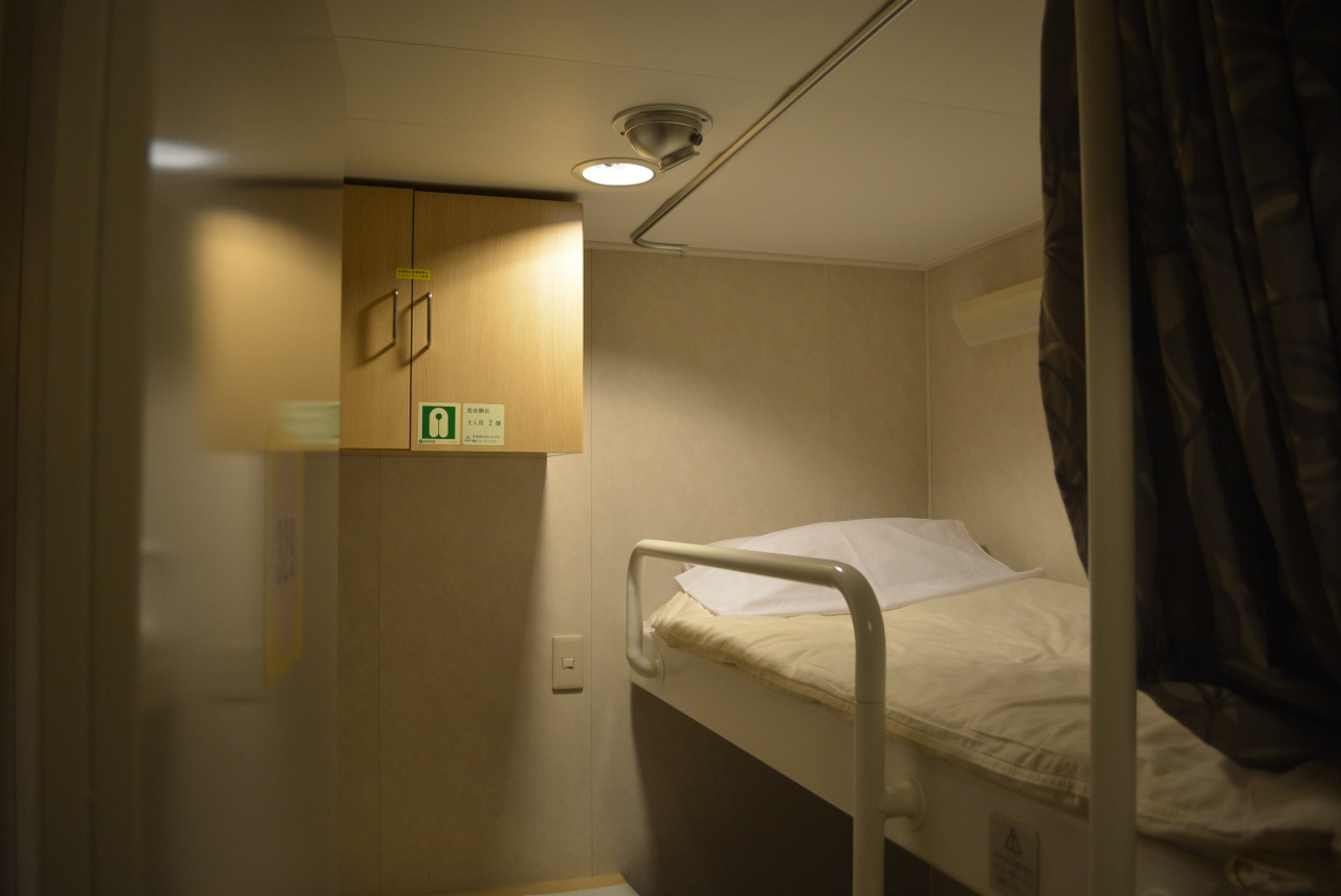 寝ていてもすごい揺れ。ジェットコースターで一瞬ふわっと体が浮くような感じがしてました。波にぶつかって音がしたりして、寝られへんって思ったけど、気付いたら朝でした。