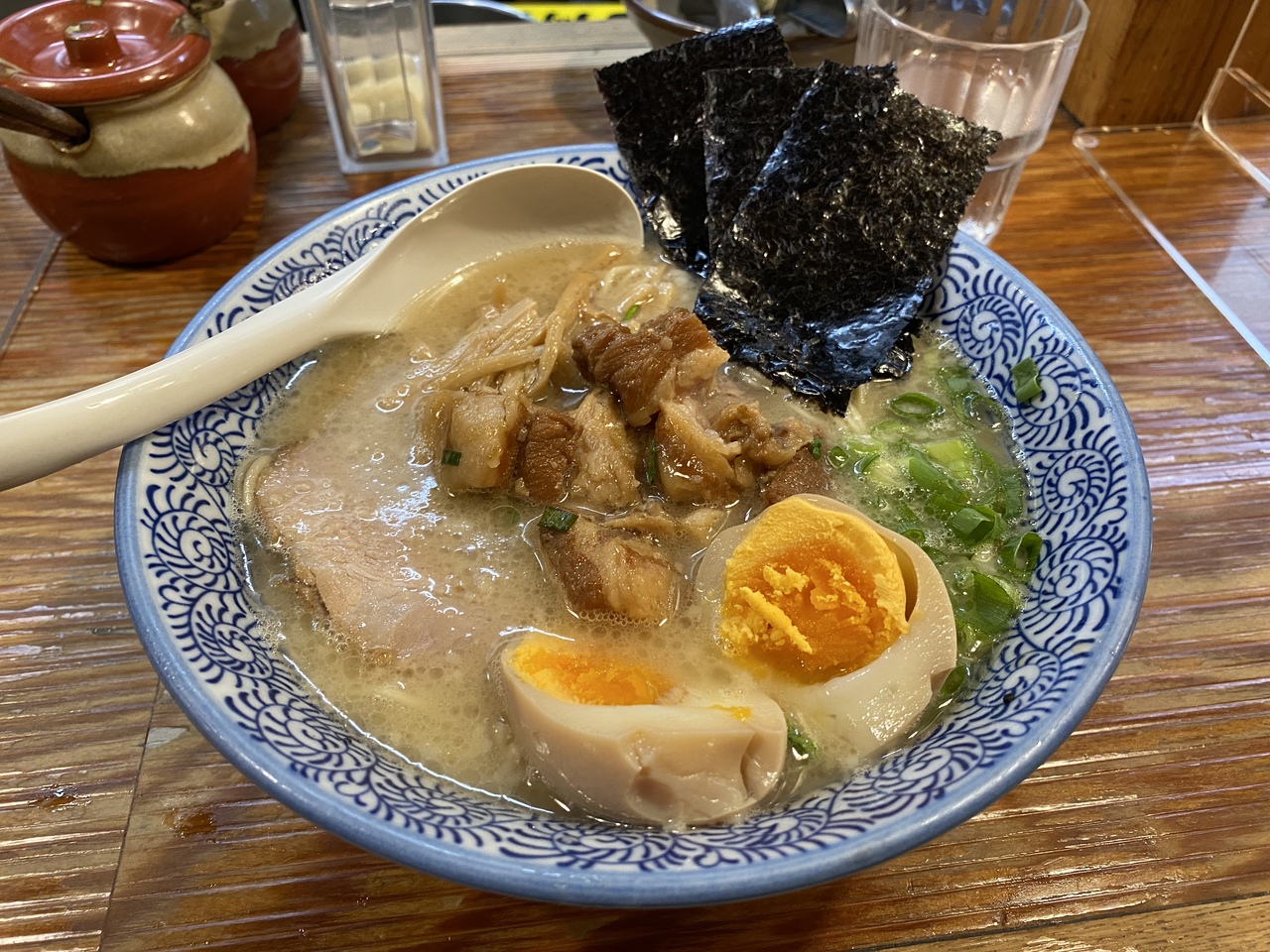 銀座一丁目駅付近で前から気になっていた久留米ラーメンのお店です!この日は泊まりがけの仕事で近くに泊まったので利用しました。20時の閉店ギリギリに入れた喜びで珍しく全部盛りを注文!900円でこれでもか!という豪華ラーメンを満喫できました。