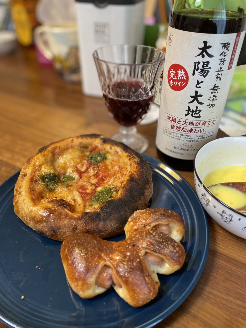 和光市駅の駅ビルにある美味しいパン屋さんです。このパン屋さんのために和光に来ると言っても過言ではありません。この日はこのご時世なのでイートインはせずに、テイクアウト。家のバルミューダで、ピザとソーセージパンを堪能しました。家だとワインが飲めるのが良いです笑