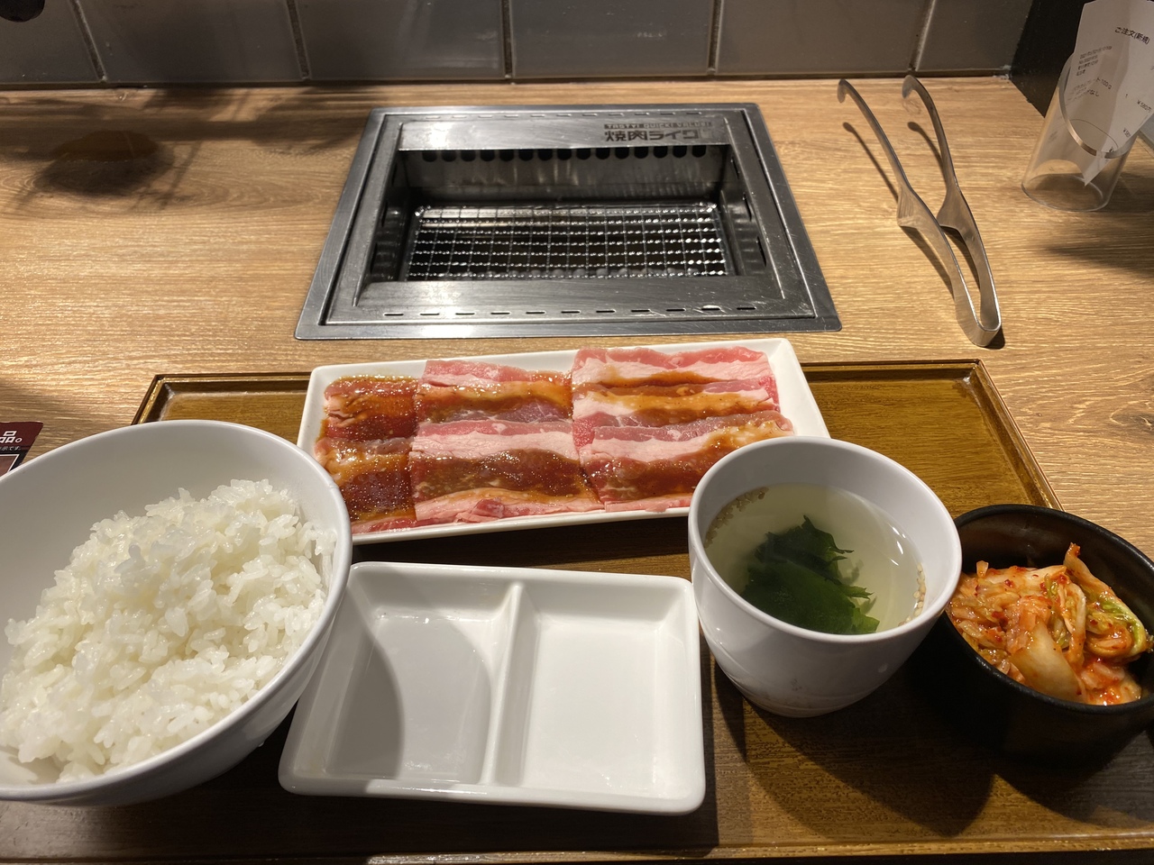 今話題の焼肉ライクに久々に行きました。昼休みに何を食べようか決めずに徘徊していてふらっと入れる価格が嬉しいです。前回多めにしたら自分には多かったので最安値のバラ肉を。十分のボリュームとクオリティです。換気も抜群で伸びそうですね!