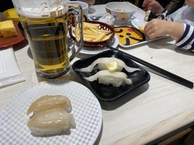 成増駅前のビルにある回転しないお寿司の店。子供に優しくて何度も行っています。この日は外食の気分で早めのディナー。クリスマス以来でした。写真のエンガワはちょっと脂が多く、この日のヒットはニシンでした。あとポテトも美味しいです笑