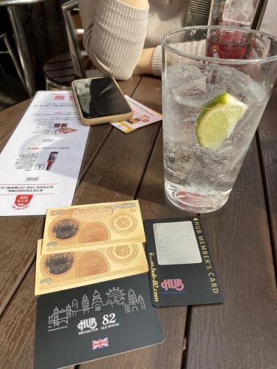 後楽園のラクーアにあるHUBです。散歩中に子供が寝たので夫婦でカフェがわりに使いました。長年愛用してきたHUBカードが刷新です。外から桜が眺められて快適でした。なかなか屋内で飲むのには勇気が要りますが、晴れていれば外も良いですね。