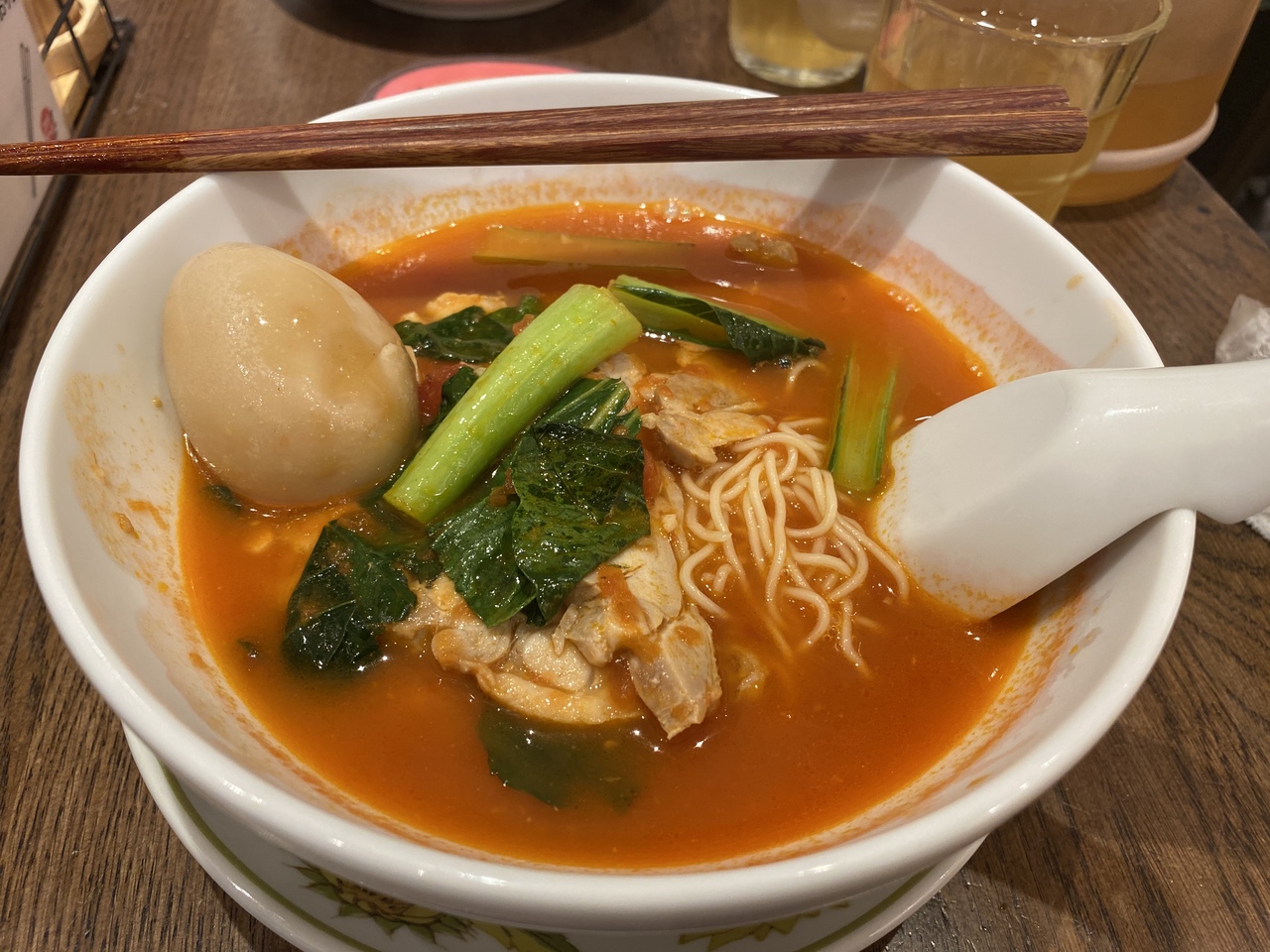 妻が女性の同僚とよく行くというラーメン屋さんに初めて連れて行ってもらいました。夏バテにはやっぱり麺類。しかも野菜のスープが取れるので嬉しいです。もうちょっと洋食寄りなのかと思いきやしっかりラーメン感も味わえて満足です!