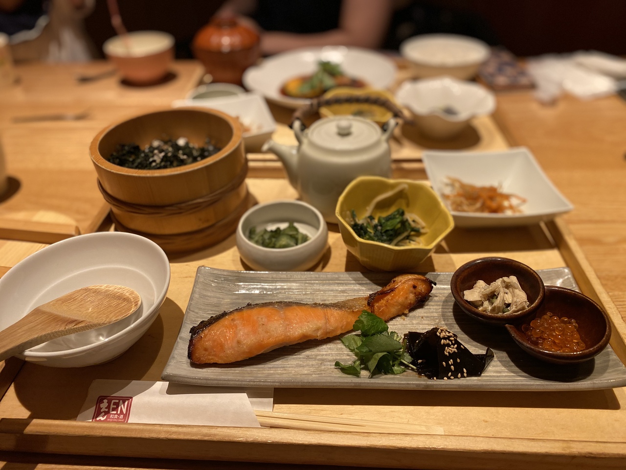 ランチ難民になりやすい品川駅界隈で重宝できそうな和食レストランです。お茶漬けのえんの系列です。この日は子連れで個室を利用しました。だし茶漬けと鯖の唐揚げ定食をチョイス。ご飯がおかわり自由で子供がいても安心です。鮭の西京漬けとイクラののっただし茶漬け。最高でした~。