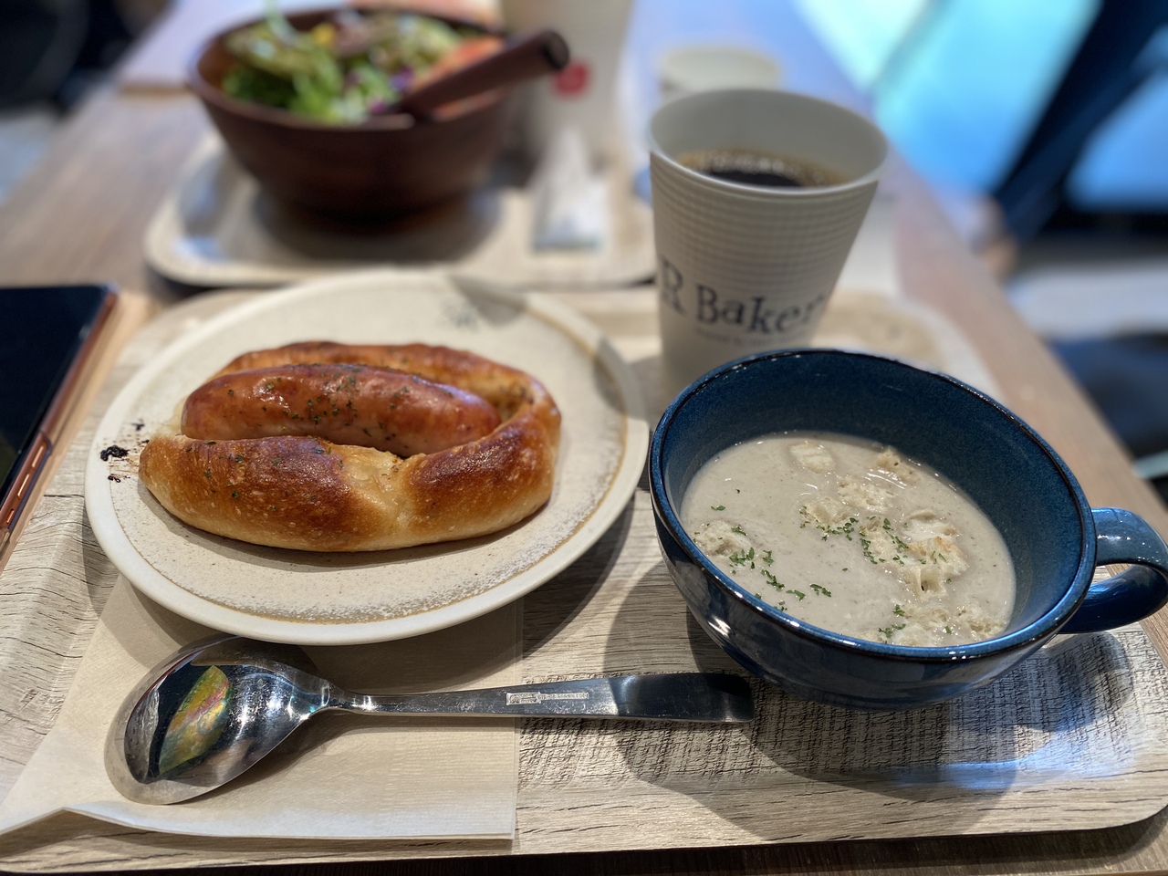 テイクアウトでは何度か利用していましたが、大阪由来の粋なパン屋さんでこの日は初めて店内利用です。お得なランチを注文。スープにドリンクも付いて650円は格安!もちろん一番高いパンを注文です笑 ブランチから優雅な気分を味わえました~。