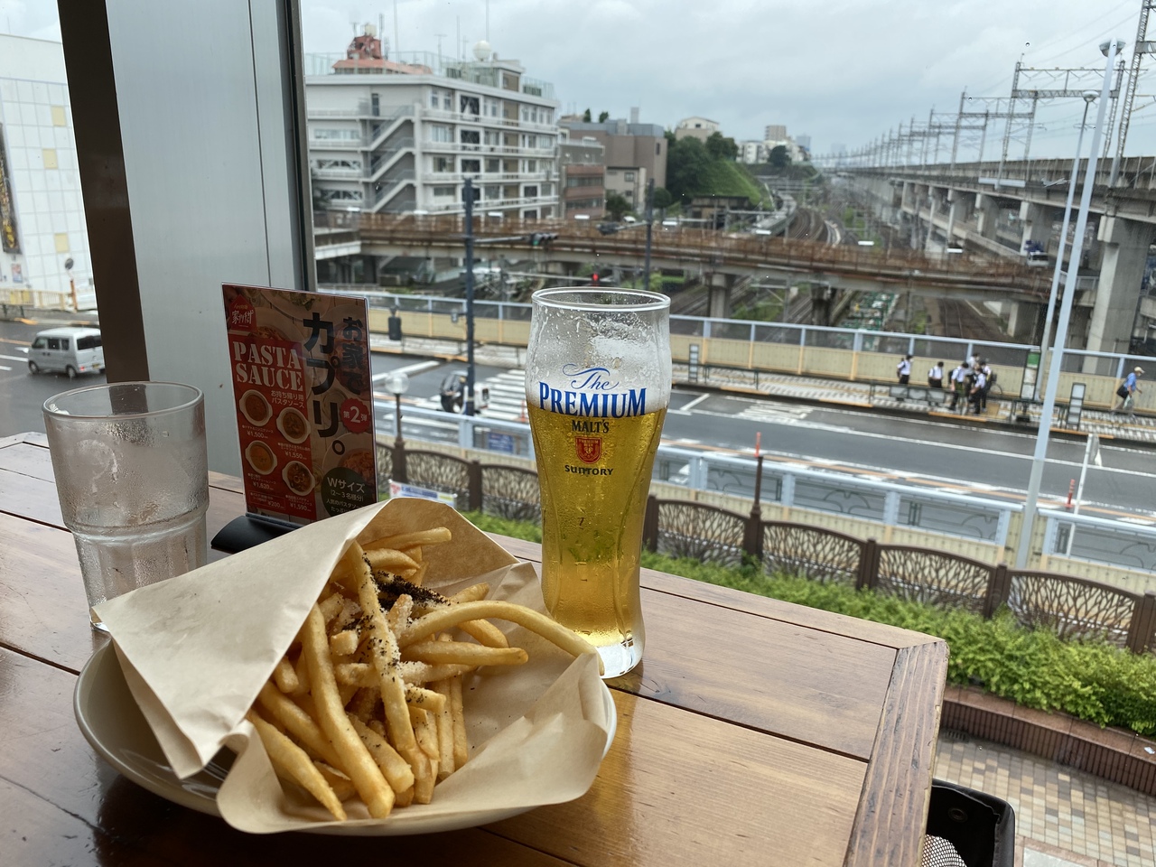 子鉄の聖地と言われる田端駅の駅ビルに、お店も大満足なトレインビューレストランを発見しました。ランチセットを食べました。パスタもビールもフライドポテトも満喫。頻繁に新幹線が通るので飽きません。リピート確定で会員になりました笑