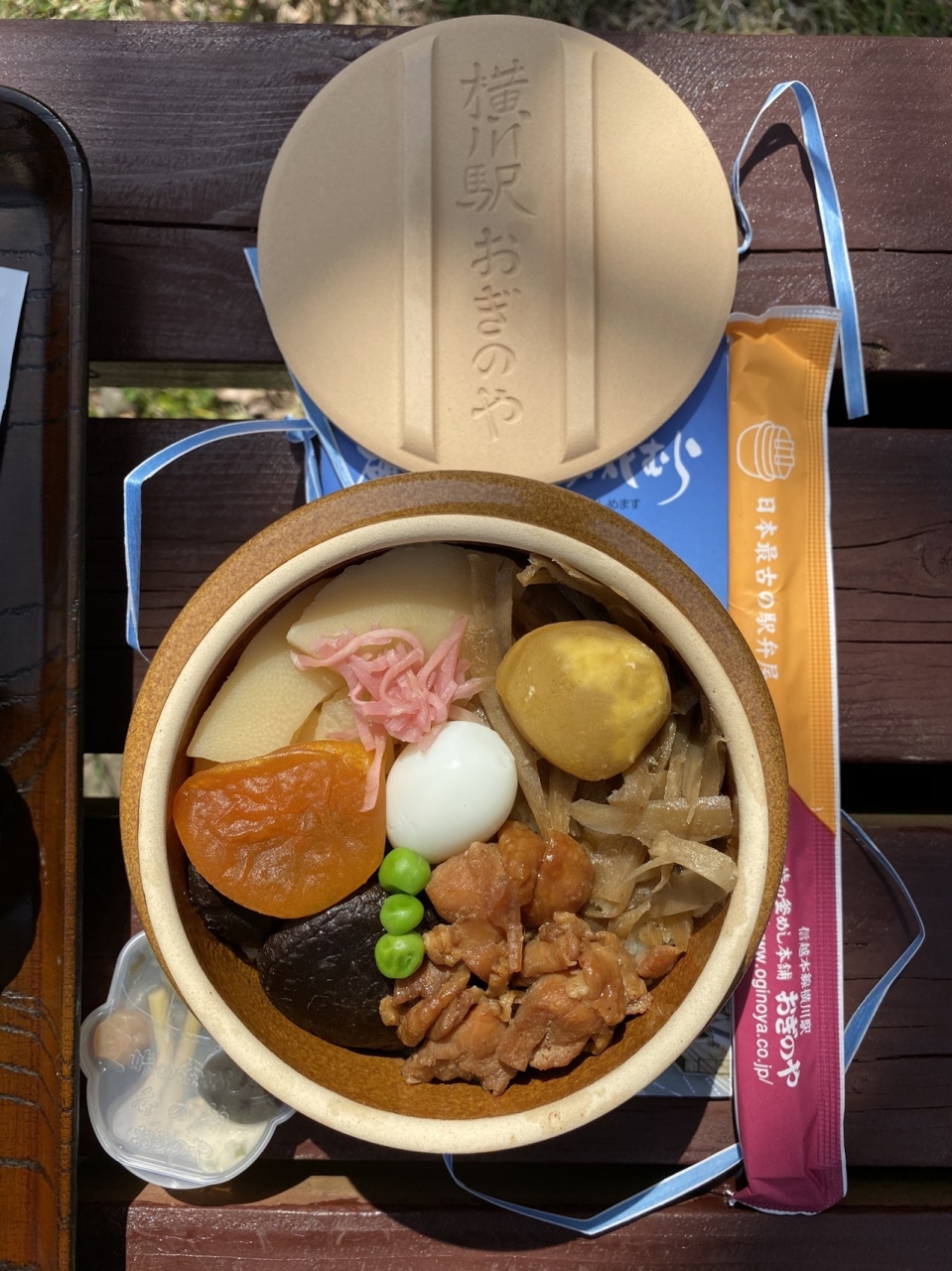 先月鉄道文化むらに行った際に利用しました。横川でランチと言えば買わないはずがありません!園内では売り切れと言うことで引き返して駅で購入しました。駅弁フェアでもおなじみですが、やはり現地で買うとほかほかでおいしいですね。とりあえず容器は持って帰りました笑