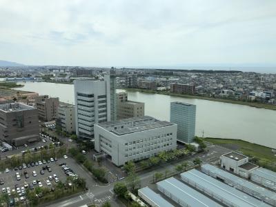 新潟と言えば無料展望台。少し郊外ですが新潟県庁にも無料の展望台があります。最上階の展望フロアを歩いて一蹴することができます。佐渡島は目の前!少し霞んでいたのに思いのほか近くてびっくりしました。粟島も肉眼で見ることができました。