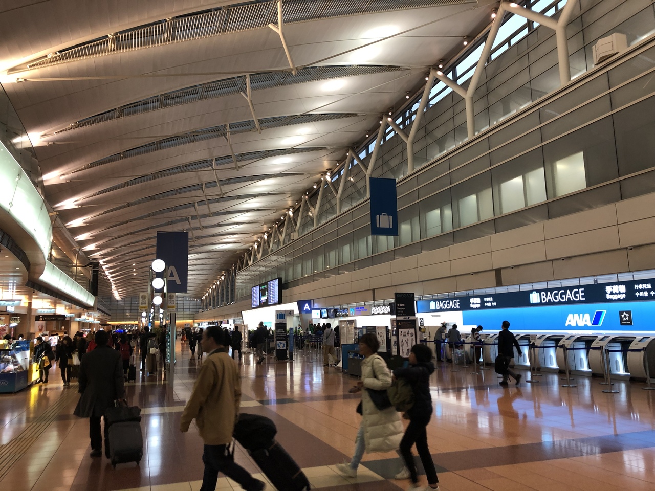 久々に仕事で使いました。モノレールからエスカレーターを上がってすぐに保安検査場へ。以前より5分ほど締め切りが早くなったようです。それもそのはず、かなりの混雑が。特に冬は荷物が多く詰まりますね。その先も長いので、搭乗までの見込み時間を把握しておくと良いですね。