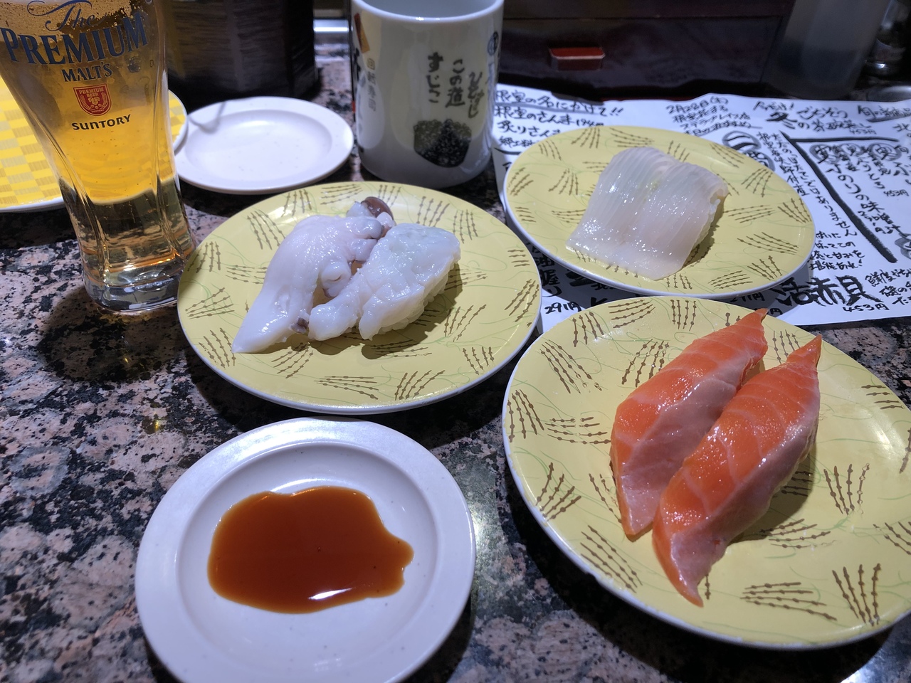 並んで入りました。21時ごろに札幌に着いて名前を書いて、概ね30分くらいで呼ばれました。いざ呼ばれればすぐに戦場。イメージしていたネタを次々に注文します。タコやイカは本州にはない透明感。つぶ貝も流石です。「賑やかさ」だけが課題ですね笑