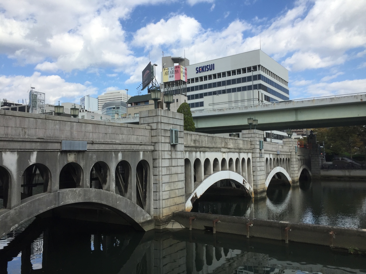 天気が良く梅田から淀屋橋まで歩いている時に見つけた橋です。橋は好きなのですが、しっかりと説明書きを読まずに後で調べたらなんと重要文化財。失礼しました!橋そのものというよりも周囲の建造物や川の流れが織りなす景観が素敵です。