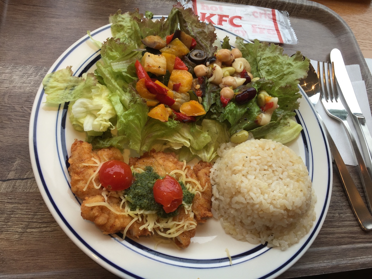 病院帰りに寄りました。11時前ということで空いてら店が少ない中で助かりました。カフェの旗艦店らしく内装が綺麗で、女子大とコラボしたサラダプレートもありました。とにかく朝のチキンはうまい!油が新鮮だから?やみつきです笑