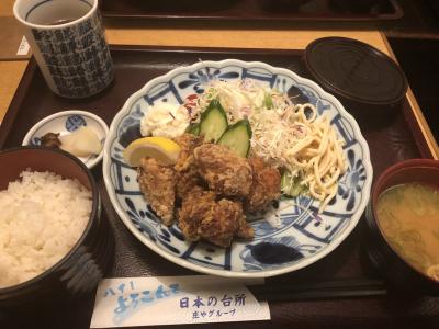 新大阪駅の昭和館あふれる食堂街で同僚4人で利用しました。あまり時間がなかったのですぐに出てくるチェーン店居酒屋のランチは重宝します。唐揚げ定食を注文しました。なんとなく揚げ方に関西を感じるのは私だけでしょうか笑