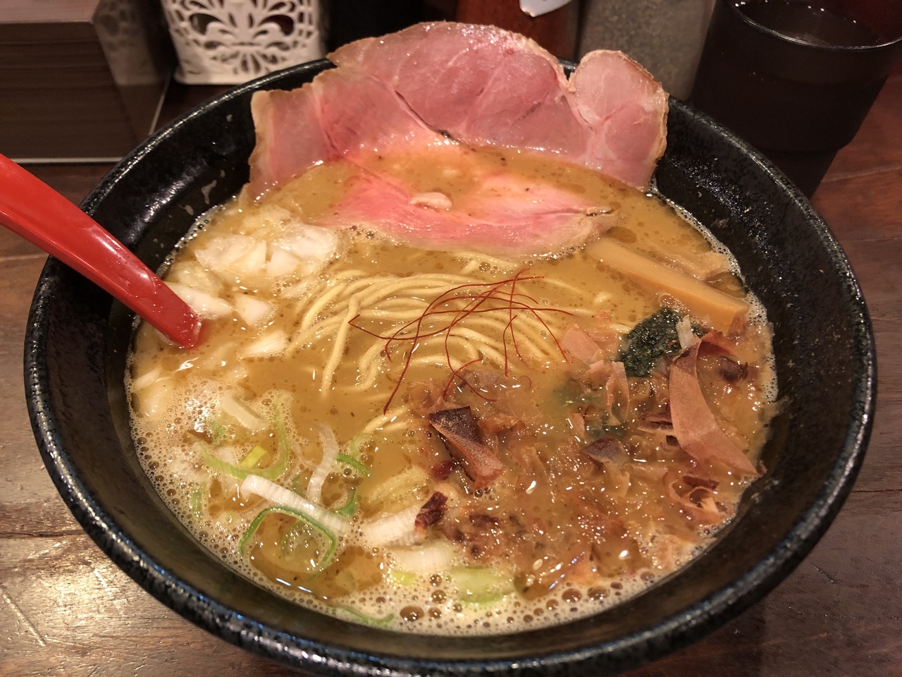 ラーメン屋さん以外オリジナルのお店が少ない成増。そんな中で、ラーメン四天王とも呼べる名店の一つがこのきころく。何度かワンコインフェアで訪れましたが、久々に普通の日に。定価で食べても笑、こってり魚介スープが美味です!玉ねぎが濃厚さを中和してくれるのがたまらないです。