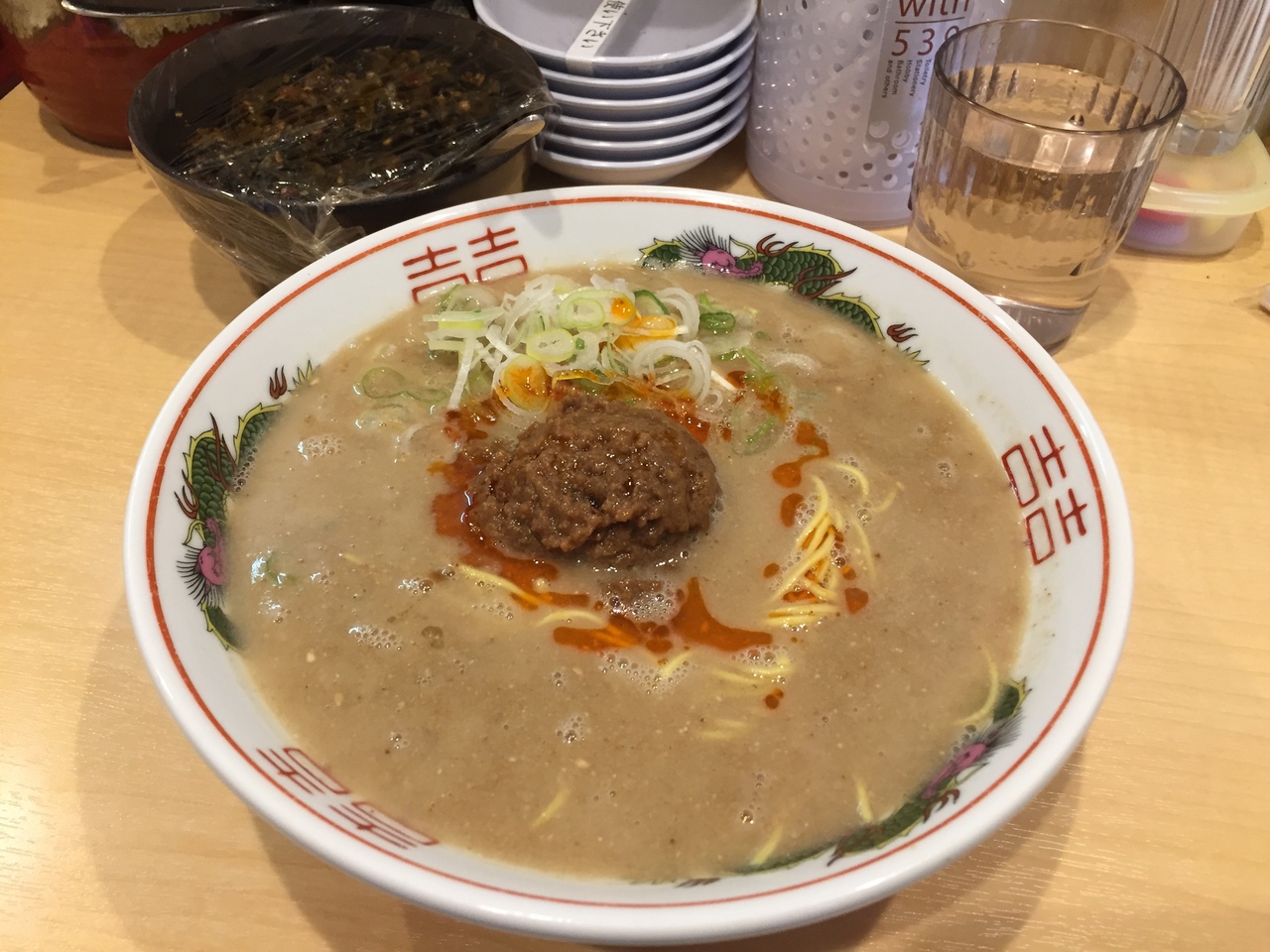 池袋に突如現れたワンコインラーメンに昼休みに挑戦しました。博多ラーメンベースの坦々麺って、そりゃ絶対美味いじゃんという期待を裏切りません。ひき肉がペーストだったりファーストフード感もありますが、スープは本格的。リピートしそうです。