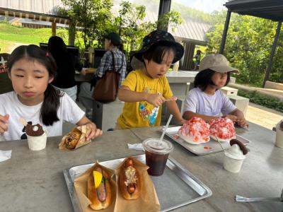 ここでかき氷中毒の子供にかき氷を与え。