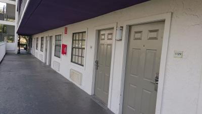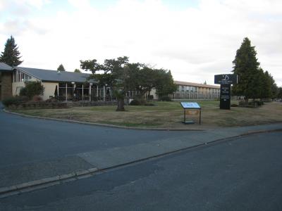 レイクフロント・ドライブ沿いにある2階建てのホテル(アコモデーション)です。