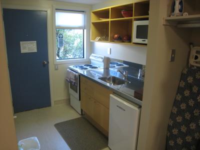 ・キッチン、コンロ、レンジ、冷蔵庫、食器、アイロンが揃っています。自炊する人、夫婦・家族で長期滞在する人には向いていると思います。でも私のように料理もできない者が1人で泊まると割高です。