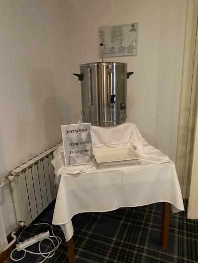 バイキング会場前にホットウォーターが置かれてる