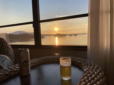 天草五橋近くのホテルで、展望が最高です。日没が6時前なので部屋でゆっくりくつろぎながらサンセットを楽しめました。露天風呂は噂通り、外部から見えるかも???