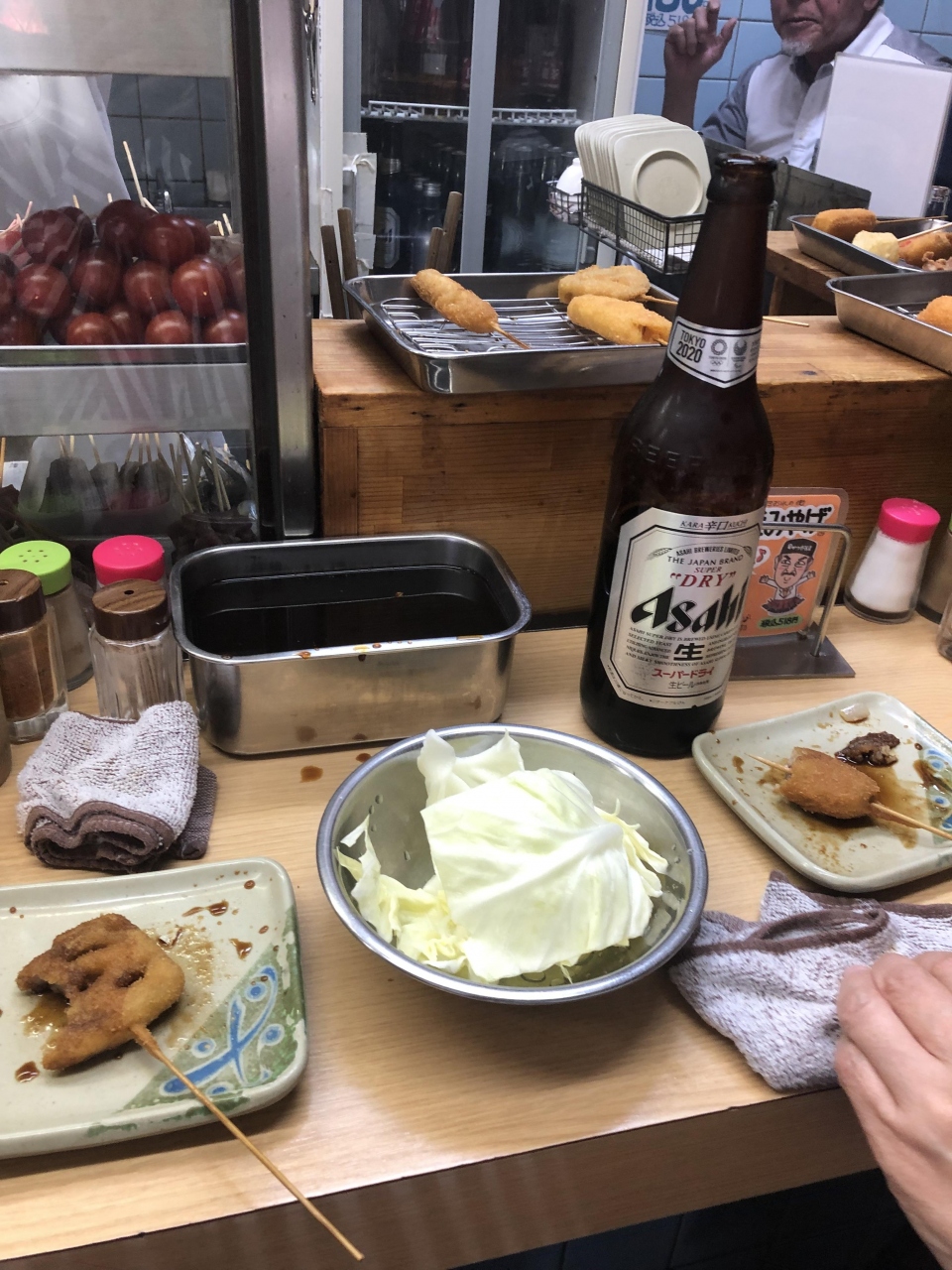 動物園から歩いて行けます。通天閣のそば路地をはいります。お昼前で並ばず入れましたが席を詰めてもらいカバンを壁に掛けます。ネタが並んでいますがメニューを見て注文しました。