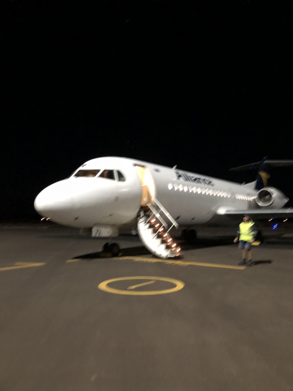 JTBのツアーでパースからのチャーター便に搭乗しました。初就航とのことでセレモニーもあったようです。2と3の座席で100人乗りだったでしょうか。