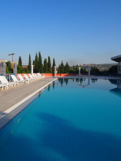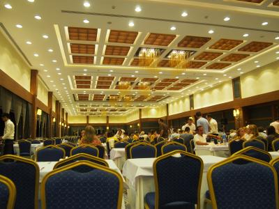 大型ホテルです。ツアーバスも多かったです。部屋は広めでバスタブもあり、部屋の居心地は良いです。温泉プールもありましたが、水着は持っていかなかので入らずです。卓球場やビリヤード場、キッズルームもあり家族で過ごすにはぴったりです。夜はテラスで無料のベリーダンスショーが楽しめます。